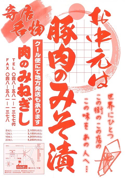 | ○お中元に寄居名物、豚肉の味噌漬けはいかがでしょうか? | |||||||